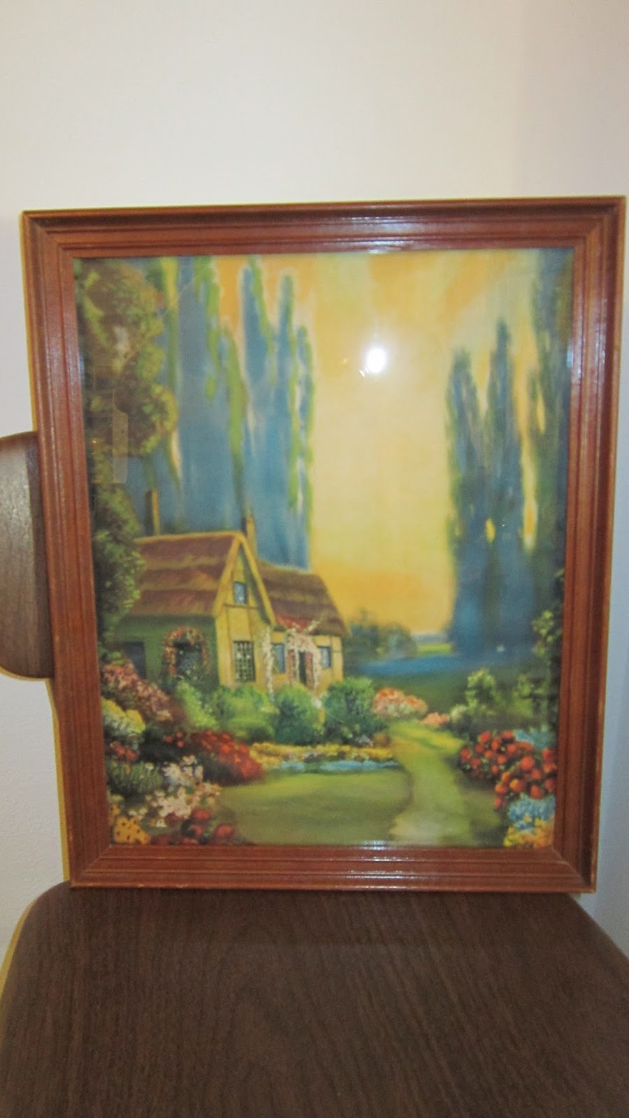 In the next photo, below, you see an old cottage print that was in a kind-of-funky frame at a thrift store.
